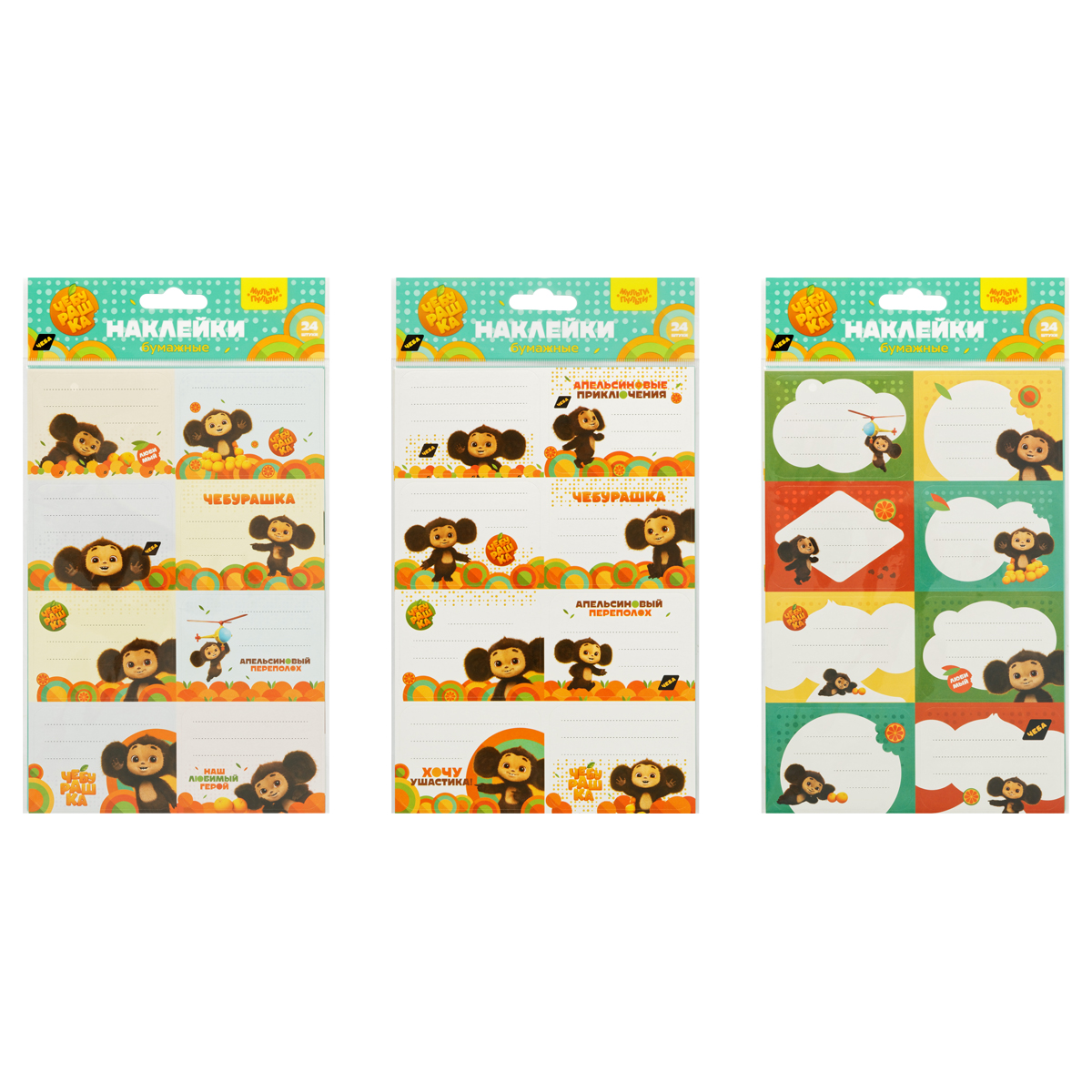 Набор бумажных наклеек для маркировки школьных принадлежностей Мульти-Пульти "Чебурашка", 24 наклейки