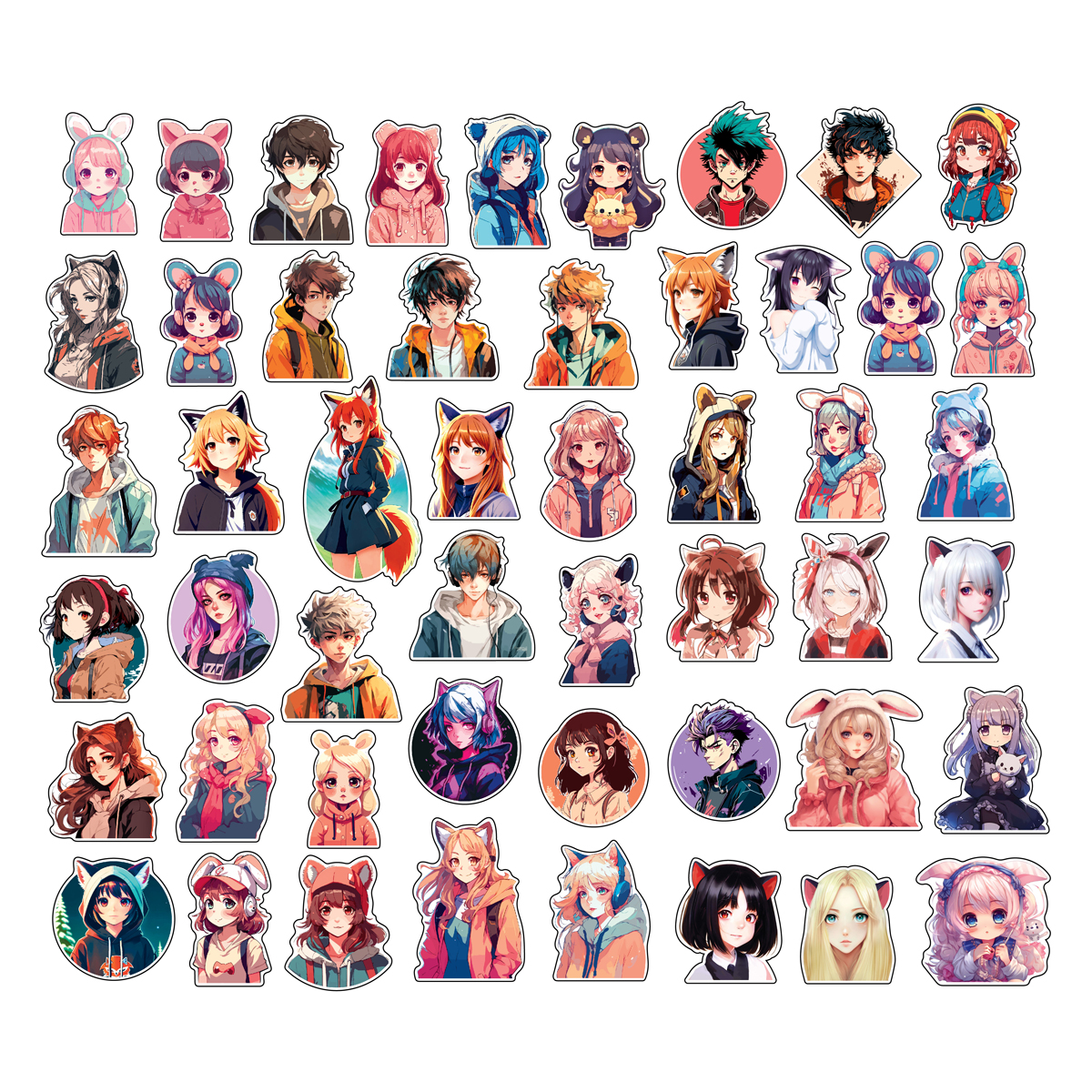 Наклейки ПВХ MESHU "Neko", 50 штук
