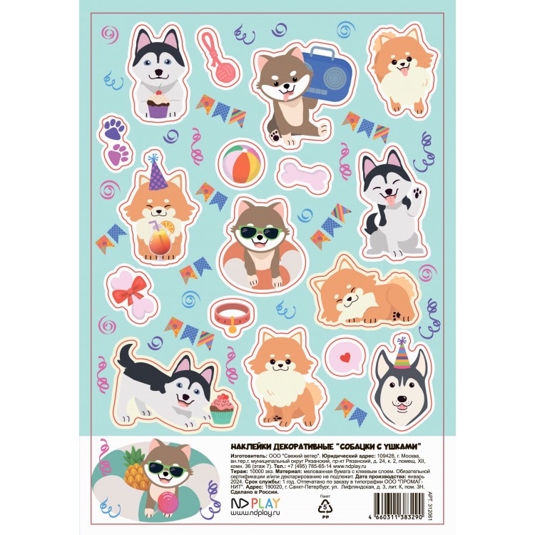 Наклейки декоративные бумажные А5 Собачки с ушками-1