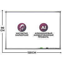 Доска магнитно-маркерная 100x180 см лаковое покрытие алюминиевая рама
