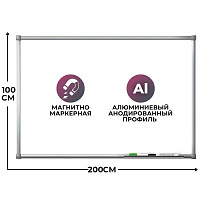 Доска магнитно-маркерная 100х200 лак Комус Premium алюмин