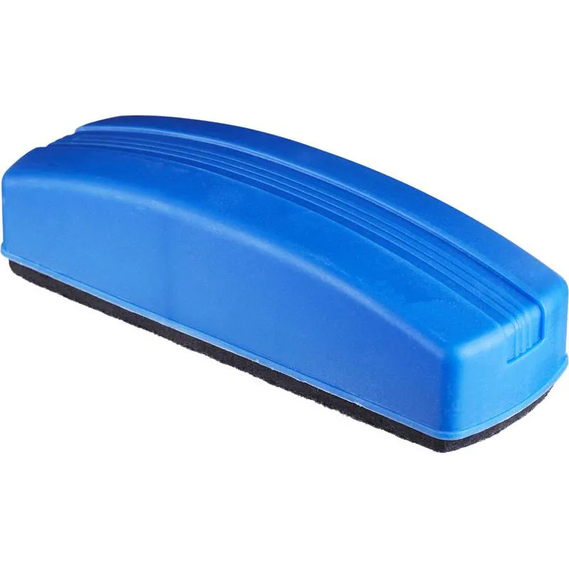 Губка предназначена для стирания маркеров с белых досок сухим способом. Оснащена магнитной пластиной для крепления к доске. Размер - 160x55x45 мм. Губка используется без сменных салфеток. Корпус синего цвета, фетр черного цвета. Обращаем внимание, что для эффективного удаления с магнитно-маркерной доски засохших записей рекомендуем использовать губку в сочетании со спреем для магнитно-маркерных досок. Спрей необходимо распылить на доску, а затем стереть остатки надписи губкой.