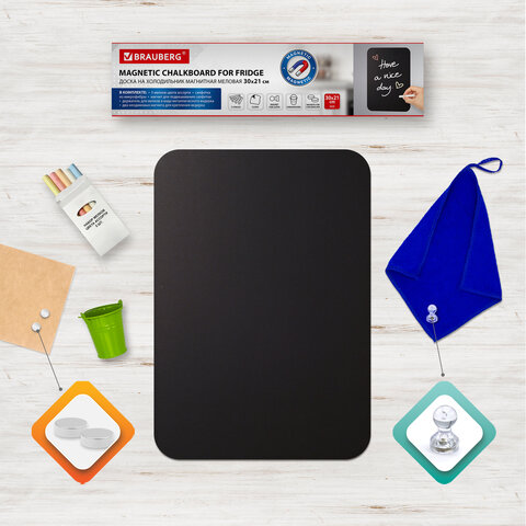Доска на холодильник магнитно-меловая 30х21 см с мелками, магнитом и салфеткой, BRAUBERG, 237843