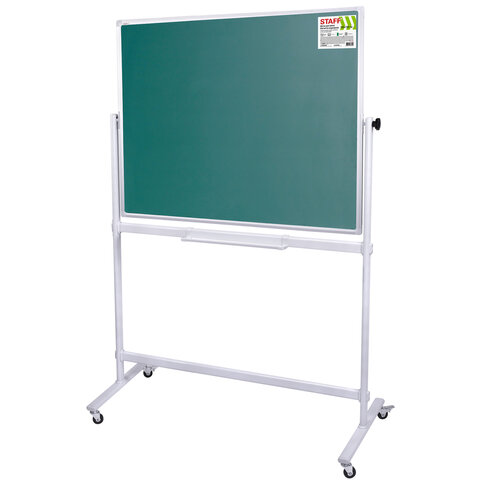 Двусторонняя доска на стенде STAFF предназначена для наглядной демонстрации информации при проведении тренингов, совещаний и презентаций. Белая рабочая поверхность с лаковым покрытием предназначена для письма специальными маркерами для белой доски и позволяет размещать информацию при помощи магнитов. Зеленая рабочая поверхность предназначена для письма и рисования мелками. Вращается в горизонтальной плоскости на 360 градусов. Перемещается на колесиках. Элементы крепления входят в комплект. Размер доски: 120х180 см.