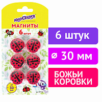 Магниты ЮНЛАНДИЯ 30 мм, НАБОР 6 шт., "БОЖЬЯ КОРОВКА", красные, 237476