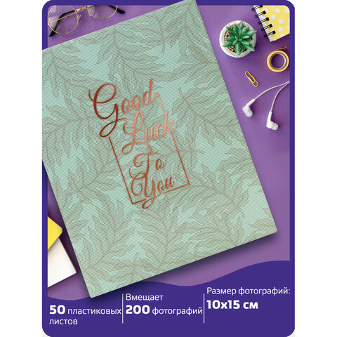 Фотоальбом BRAUBERG "Папоротник" на 200 фото 10х15 см, твердая обложка, термосварка, 391171