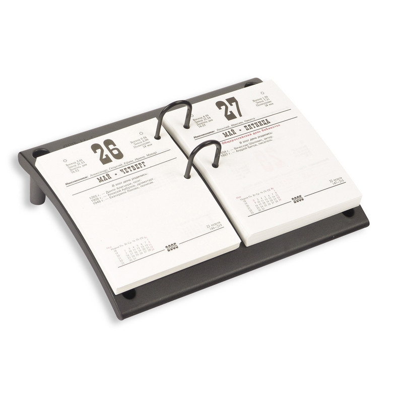 Подставка для перекидных календарей Attache изготовлена из пластика черного цвета, размер - 220-170-45 мм. Имеет ножки и дужки для удержания листков размером 140-100 мм.