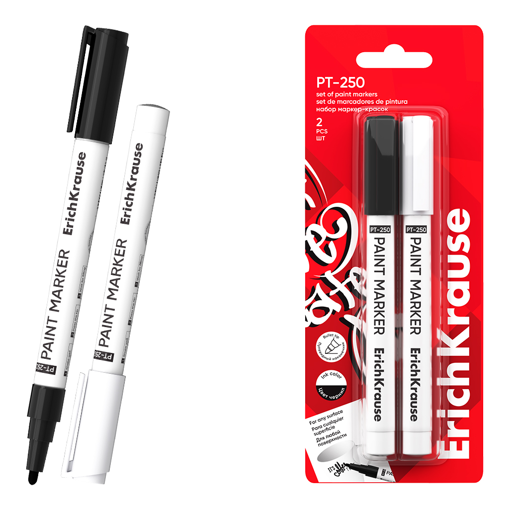 Набор из 2 маркер-красок ErichKrause PT-250, на масляной основе, цвет чернил ассорти (в блистере)