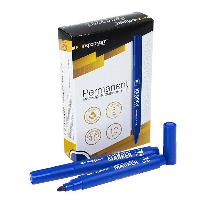 Маркер перманент. inФОРМАТ PERMANENT 2 мм синий круглый: PM01B штр.: 4602723014348