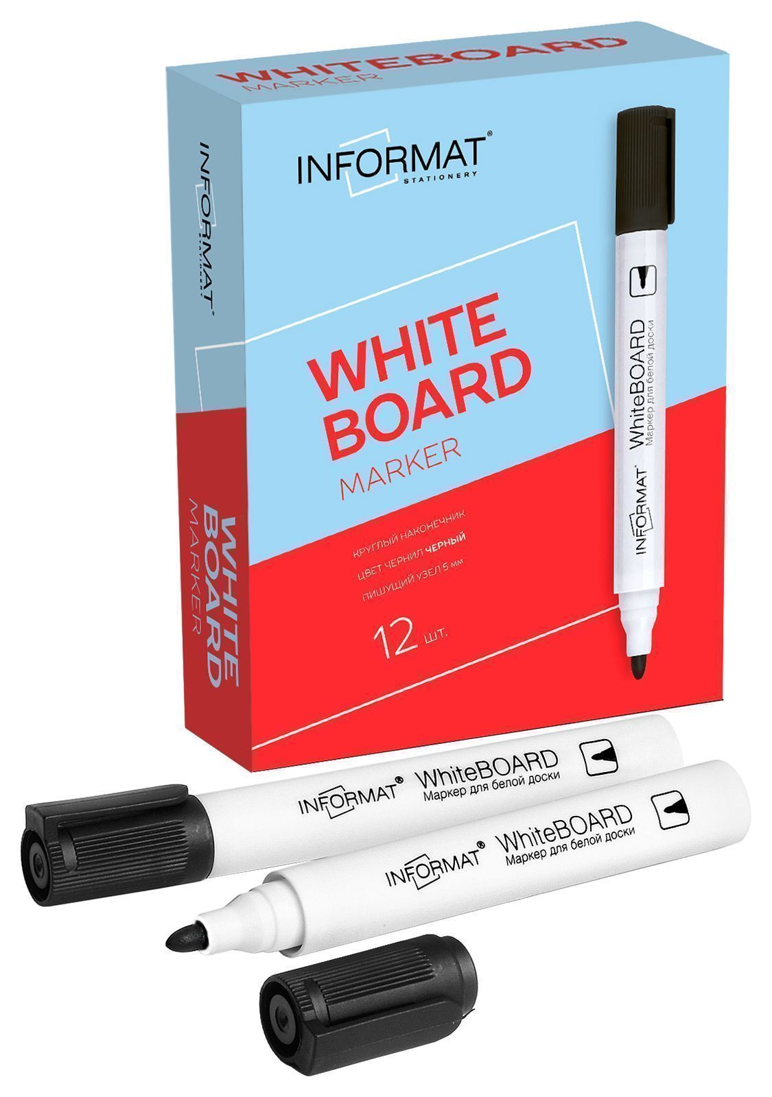 Маркеры INFORMAT Whiteboard предназначены для письма на белых досках. Удобный округлый корпус хорошо ложится в руку. Чернила на спиртовой основе быстро высыхают, не растекаются и при необходимости легко и быстро стираются губкой. Круглый наконечник устойчив к деформации. Подходит для магнитно-маркерных досок. Диаметр пишущего узла - 5 мм. Цвет чернил: черный