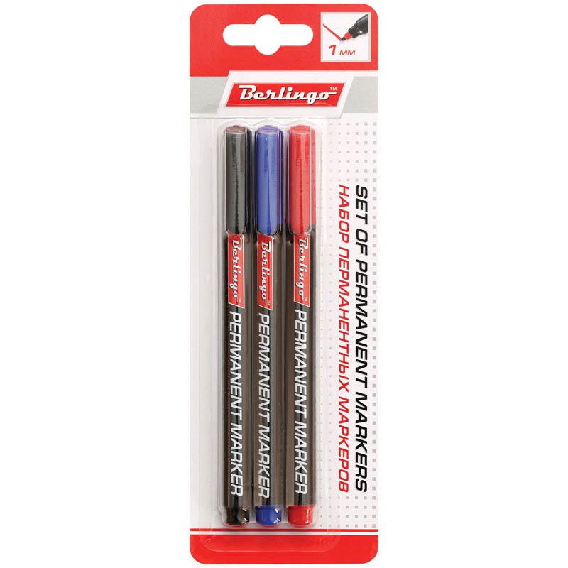 Набор перманентных маркеров 3цв., пулевидный, 1мм, европодвес: BMc_31409