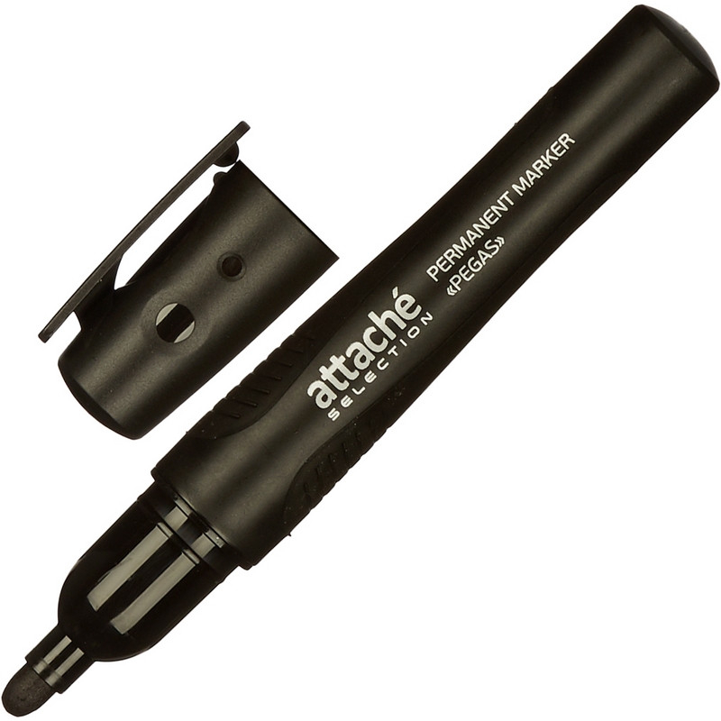 Перманентный маркер Attache Selection Pegas в пластиковом черном корпусе с прорезиненными элементами. Круглый наконечник позволяет провести линию толщиной 2-5 мм. Нестираемые чернила пишут на любой поверхности. Цвет - черный.