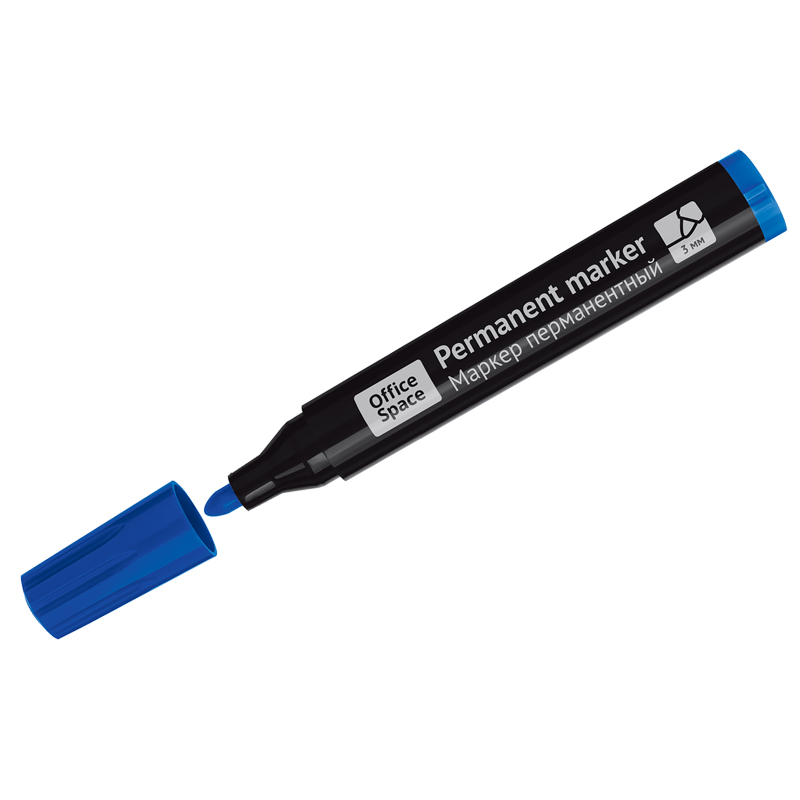 Маркер перманентный OfficeSpace "Contact" синий, пулевидный, без клипа, 3мм. 269074