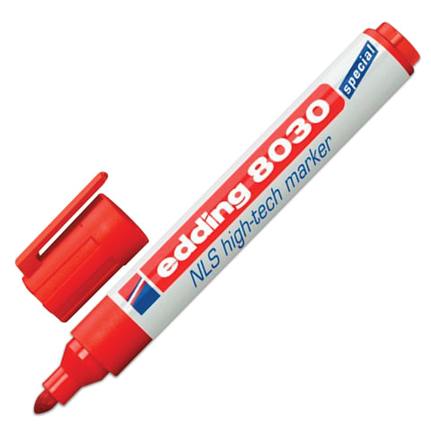 Специальный состав чернил маркера с низким содержанием хлора и галогена обеспечивает стойкость и почти полное отсутствие запаха. Чернила не вызывают изменения физико-химических характеристик материала на который они нанесены. Корпус маркера изготовлен из ударопрочного пластика. Маркер EDDING оснащен мягким пулевидным наконечником. Пишущий узел маркера EDDING-8030 изготовлен так, что при маркировке не требуется нажатия на маркер.Характеристики чернил отвечают международным аэронавигационным стандартам (ЛН 9051).Маркер EDDING-8030 предназначен для нанесения стойких, устойчивых к удалению надписей в приборостроении, авиастроении и других отраслях, где требуется избежать коррозии маркируемой детали.Также маркер EDDING-8030 можно применять в автомастерских для нанесения маркировки на грязную, замасленную поверхность.Кроме того, маркером можно нанести надпись на стекло, пластик, металл и ряд других материалов.