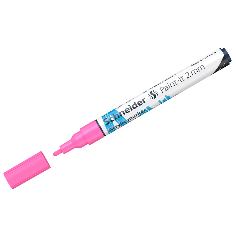 Schneider Paint-It 310 - акриловый маркер для творчества и хобби. Толщина линии – 2 мм, форма наконечника – пулевидная, цвет чернил -розовый. Акриловые чернила на водной основе быстро сохнут, обеспечивают интенсивность цвета, высокие укрывные свойства и стойкость после высыхания. Не содержат ксилол и толуол. Подходит для работ на различных поверхностях: бумага, дерево, камень, гипс и т.д. Перед использованием маркер необходимо встряхнуть для смешивания и равномерной подачи чернил. • Цвет чернил: розовый, • Толщина линии письма: 2 мм, • Страна производства: Германия