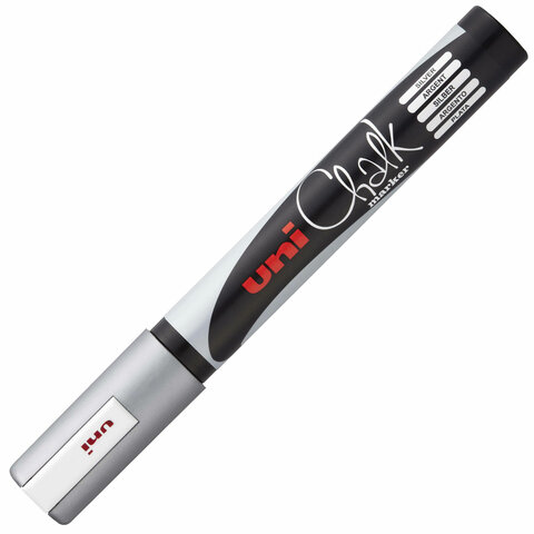 Маркер меловой UNI Chalk, 1,8-2,5 мм, СЕРЕБРЯНЫЙ, влагостираемый, для гладких поверхностей, PWE-5M SILVER