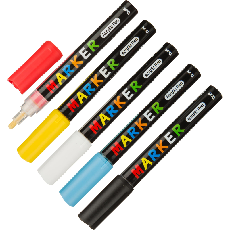 Маркер акриловый M&G, круглый наконечник, 2 мм, 5 цветов в наборе