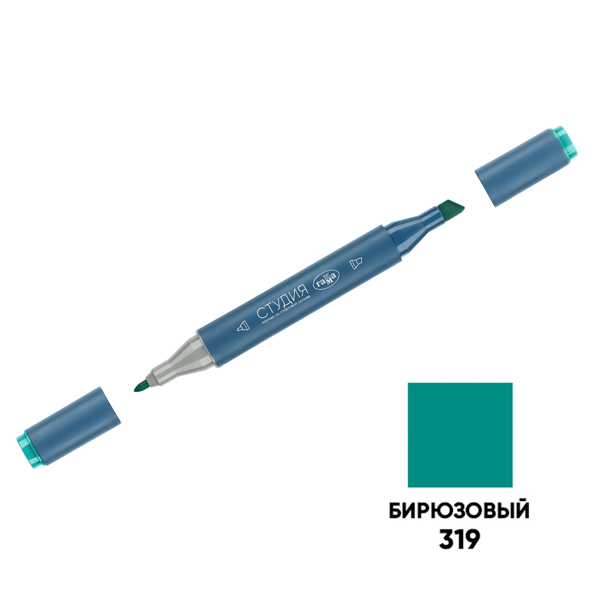 Маркер двусторонний для скетчинга Гамма "Студия", бирюзовый, корпус трехгранный, пулевид./клиновид. наконечники