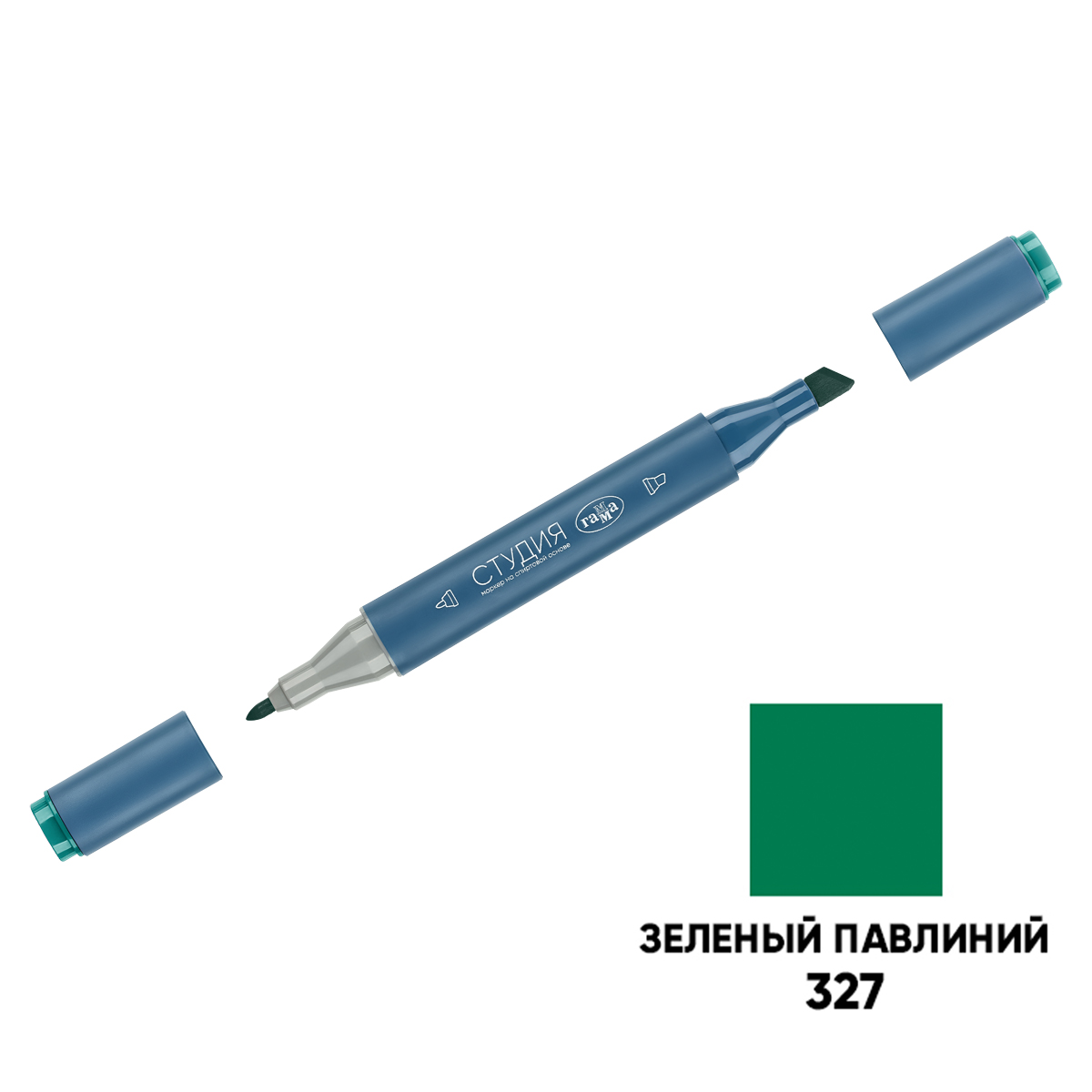 Маркер двусторонний для скетчинга Гамма "Студия", зеленый павлиний, корпус трехгранный, пулевид./клиновид. наконечники