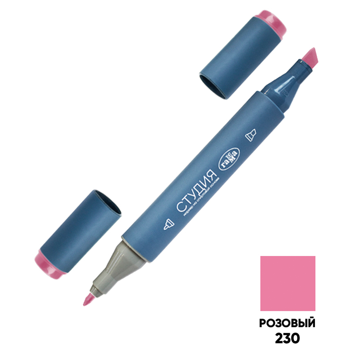 Маркер двусторонний для скетчинга Гамма "Студия", розовый, корпус трехгранный, пулевид./клиновид. наконечники