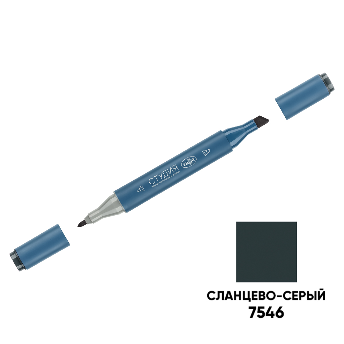 Маркер двусторонний для скетчинга Гамма "Студия", сланцево-серый, корпус трехгранный, пулевид./клиновид. наконечники
