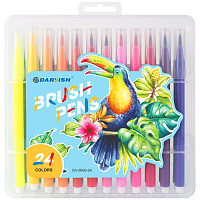 Фломастеры 24цв "Darvish" с мягкой кистью, в пластиковом пенале с европодвесом