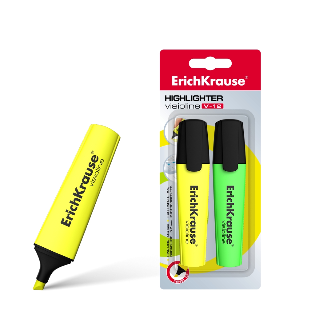Текстмаркер Erich Krause Visioline V-12, цвет чернил: желтый, зеленый (в блистере по 2 шт.)