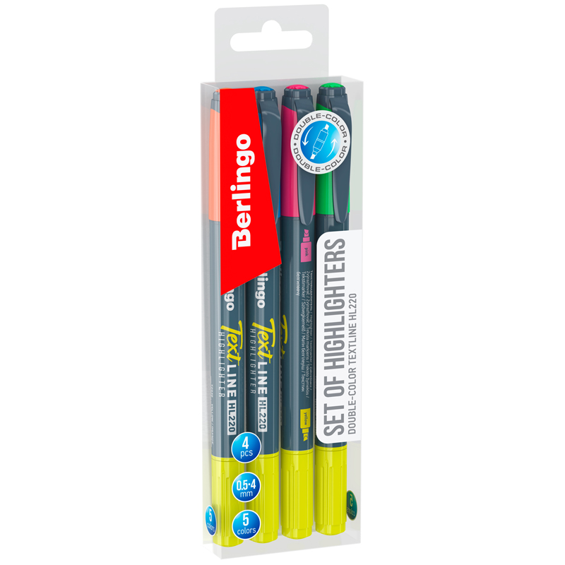 Набор текстовыделителей двусторонних Berlingo "Textline HL220" 4шт., 08цв., 0,5-4мм, европодвес