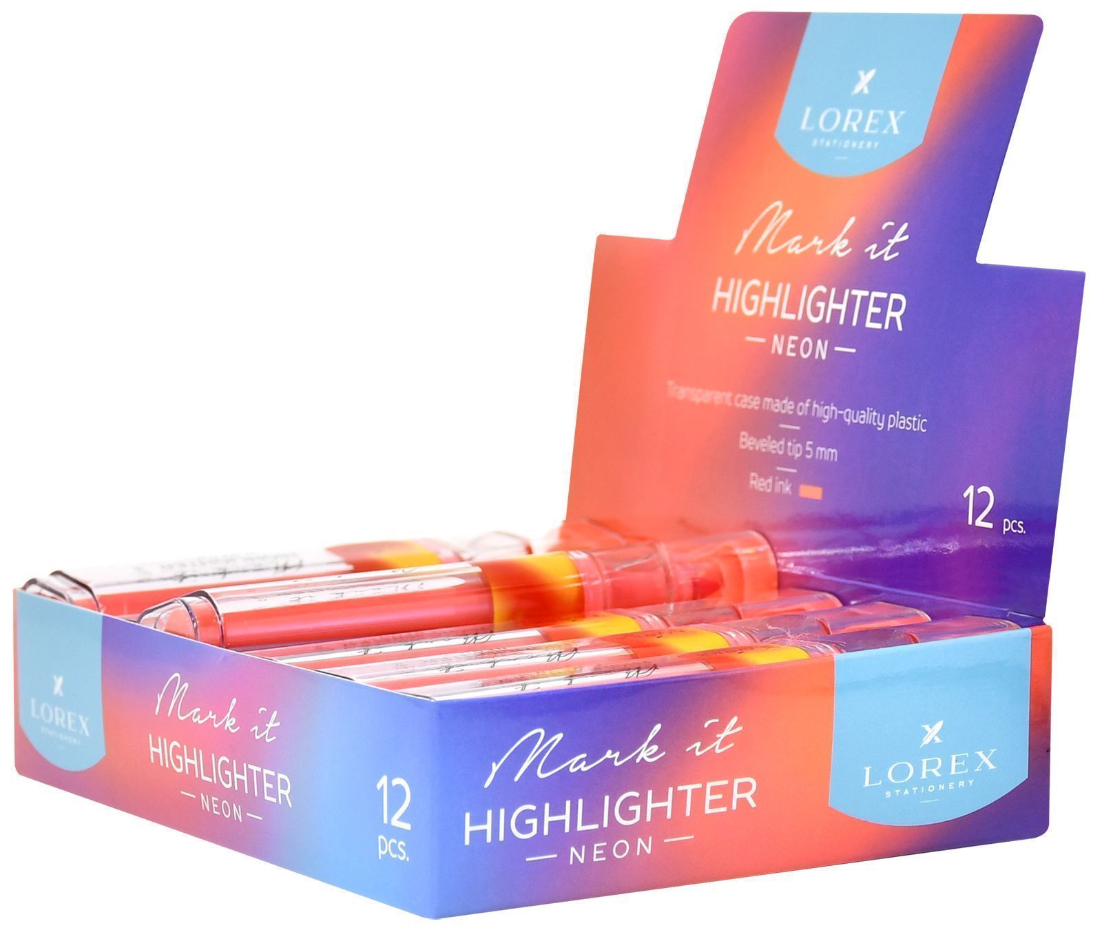 Маркер текстовыделитель LOREX Mark it NEON 1-5 мм красн. неон скошенный прозрачный корпус 1 штука