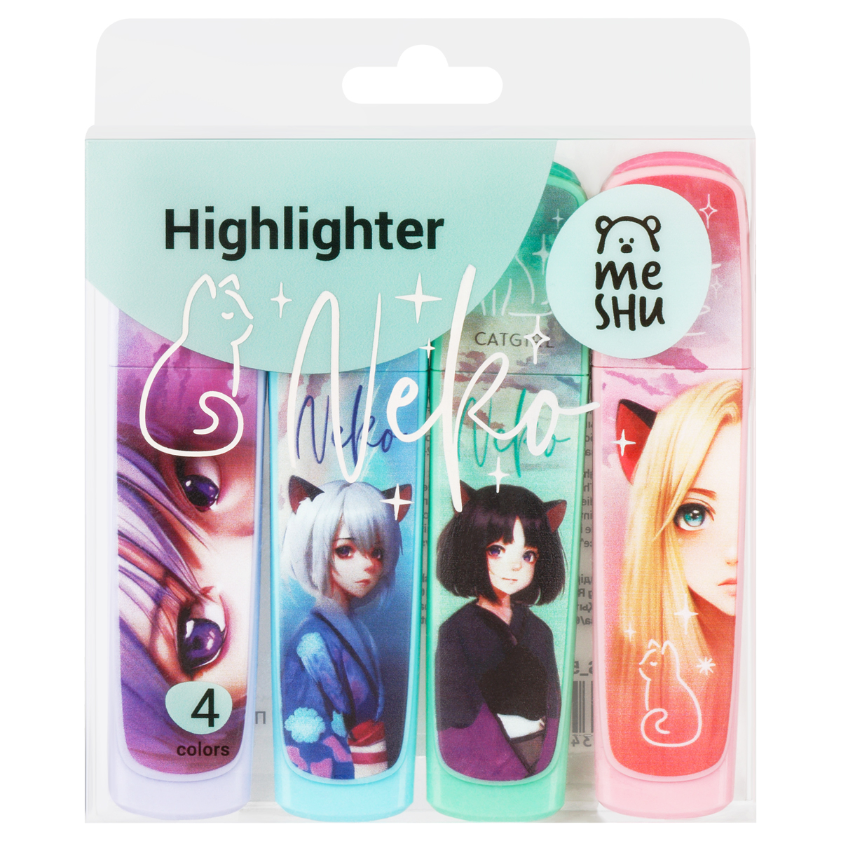 Набор текстовыделителей MESHU "Neko", 04цв., пастельные цвета, 1-5 мм, ПВХ бокс с европодвесом