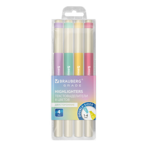 Набор текстовыделителей двусторонних 4 ШТУКИ / 8 ЦВЕТОВ, BRAUBERG "GRADE", линия письма 1-4 мм, 152509