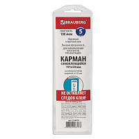 Карманы самоклеящиеся на корешок папки 70 мм (191х50 мм), КОМПЛЕКТ 5 шт., BRAUBERG, 224074