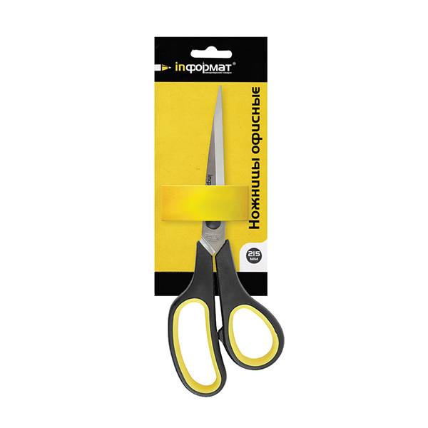 Ножницы inФОРМАТ офисные металл-желт/черн. резин.встав. эргоном. 215 мм: SO2104 штр.: 4602723007319