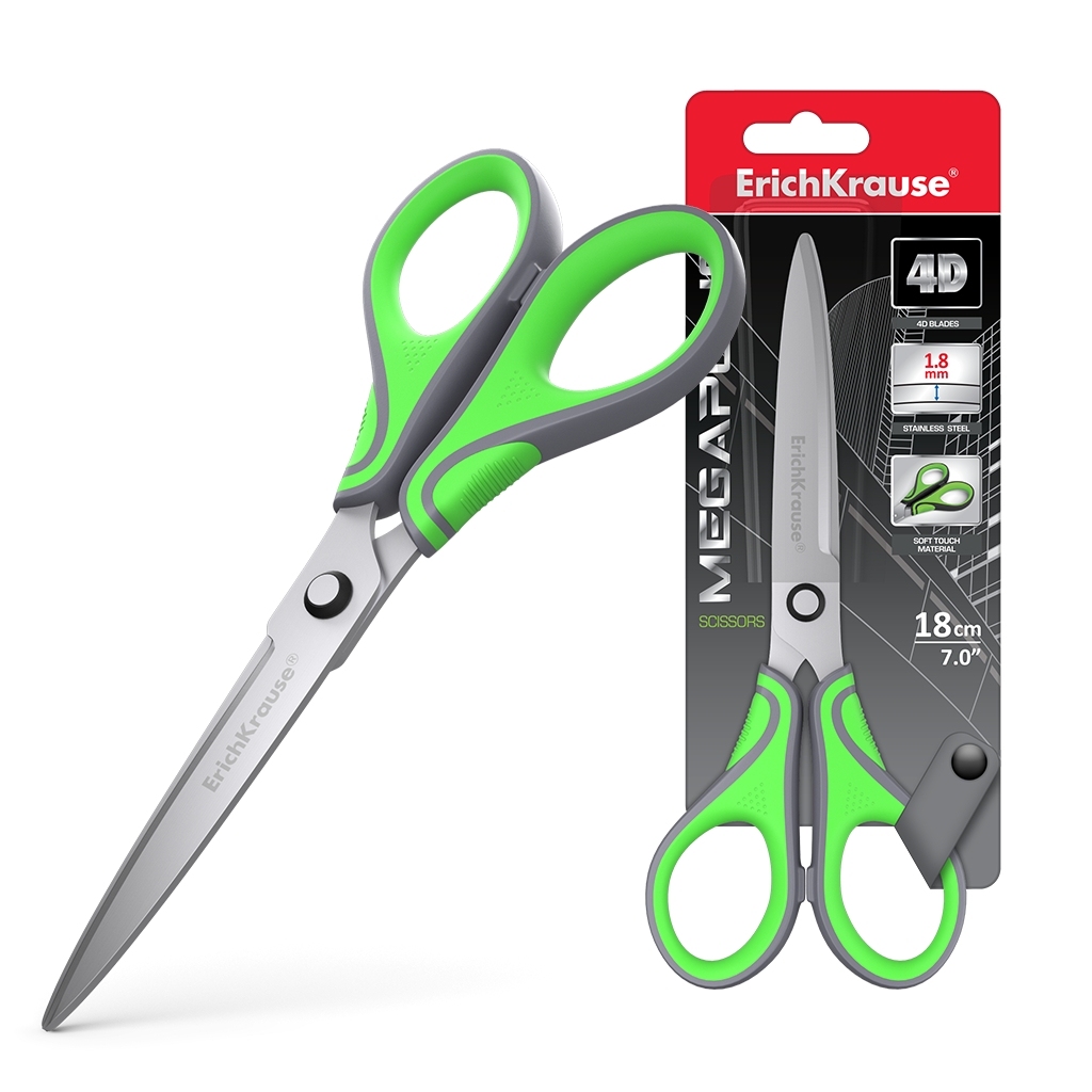 Ножницы Erich Krause Megapolis, 18см, серо-зелёный (в блистере 1 шт.)