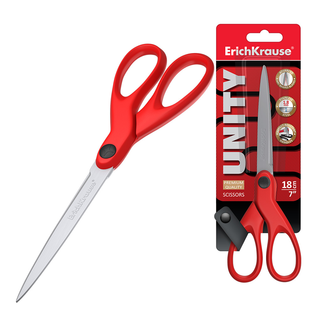 Ножницы Erich Krause Unity, 18см, красный (в блистере по 1 шт.)