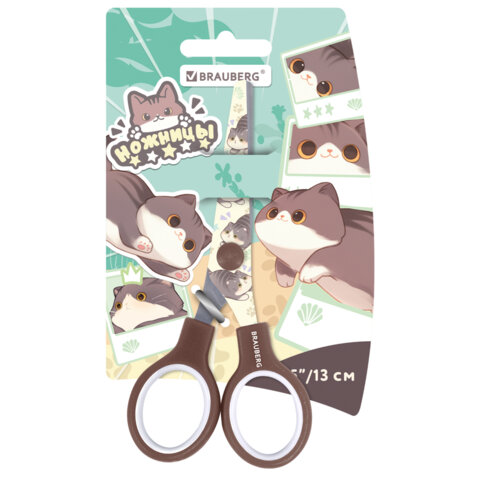 Ножницы 130 мм, коричневые, с цветной печатью "Милые котики", BRAUBERG CUTE CATS, 238957