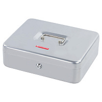 Ящик для денег, ценностей, документов, печатей, 90х240х300 мм, ключевой замок, серебристый, BRAUBERG, 291060