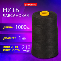 Нить лавсановая для прошивки, ЧЕРНАЯ, диаметр 1 мм, 1000 м, ЛШ 210, BRAUBERG ORIGINAL, 608924