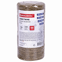 Шпагат льняной банковский BRAUBERG, диаметр 1,5 мм, длина 400 м, линейная плотность 1250 текс, 600115