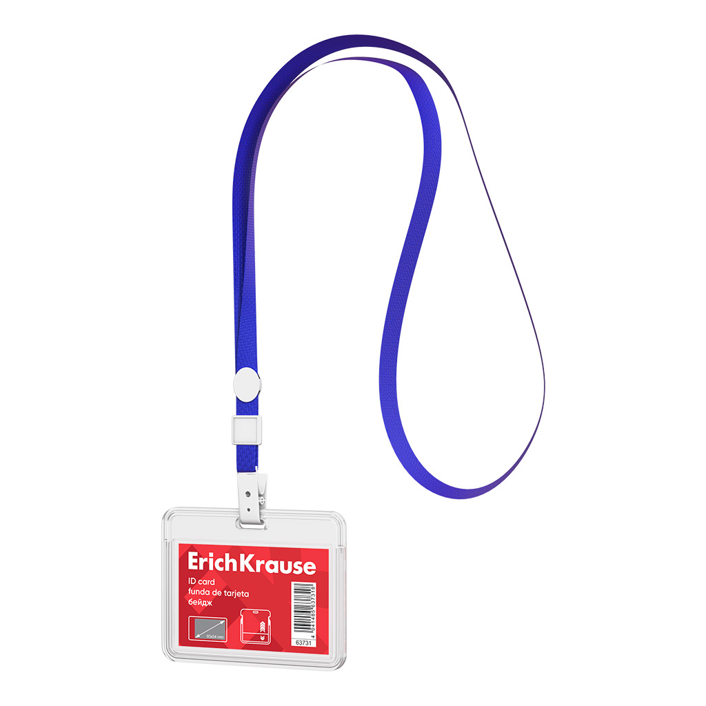 Бейдж горизонтальный в комплекте с лентой ErichKrause слайдер, размер вставки 85х54 мм, прозрачный, цвет ленты синий (в пакете)