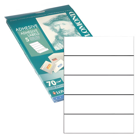Этикетка самоклеящаяся 210х57 мм, 5 этикеток, белая, для папок-регистраторов, 70 г/м2, 50 л., LOMOND, 2100245