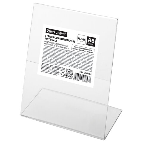 Держатель для ценника настольный, МАЛЫЙ (105х150 мм), А6, вертикальный, односторонний, оргстекло, BRAUBERG, 290414