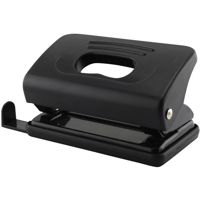 Дырокол 10 л., пластиковый, черный, с линейкой: P_7114/222111 Дырокол пластиковый черный, пробивает до 10 листов, с линейкой