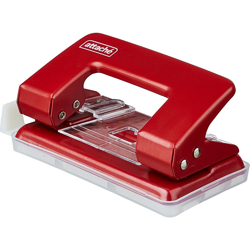 Дырокол Attache 6304 работает с документами толщиной до 12 листов плотностью 80 г/кв.м. Пробивает два отверстия диаметром 5,5 мм, расстояние между отверстиями - 80 мм. Наличие линейки позволяет зафиксировать бумагу на нужном расстоянии. Удобный контейнер легко открывается и закрывается, исключая рассыпание конфетти. Дырокол выполнен в металлическом корпусе красного цвета.