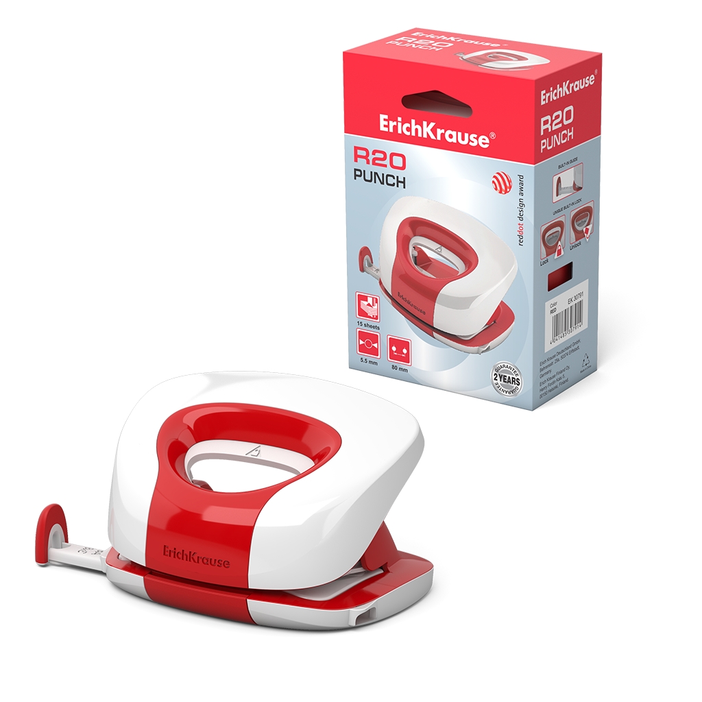 Дырокол Erich Krause® R20 до 15 листов, красный (в коробке по 1 шт.)