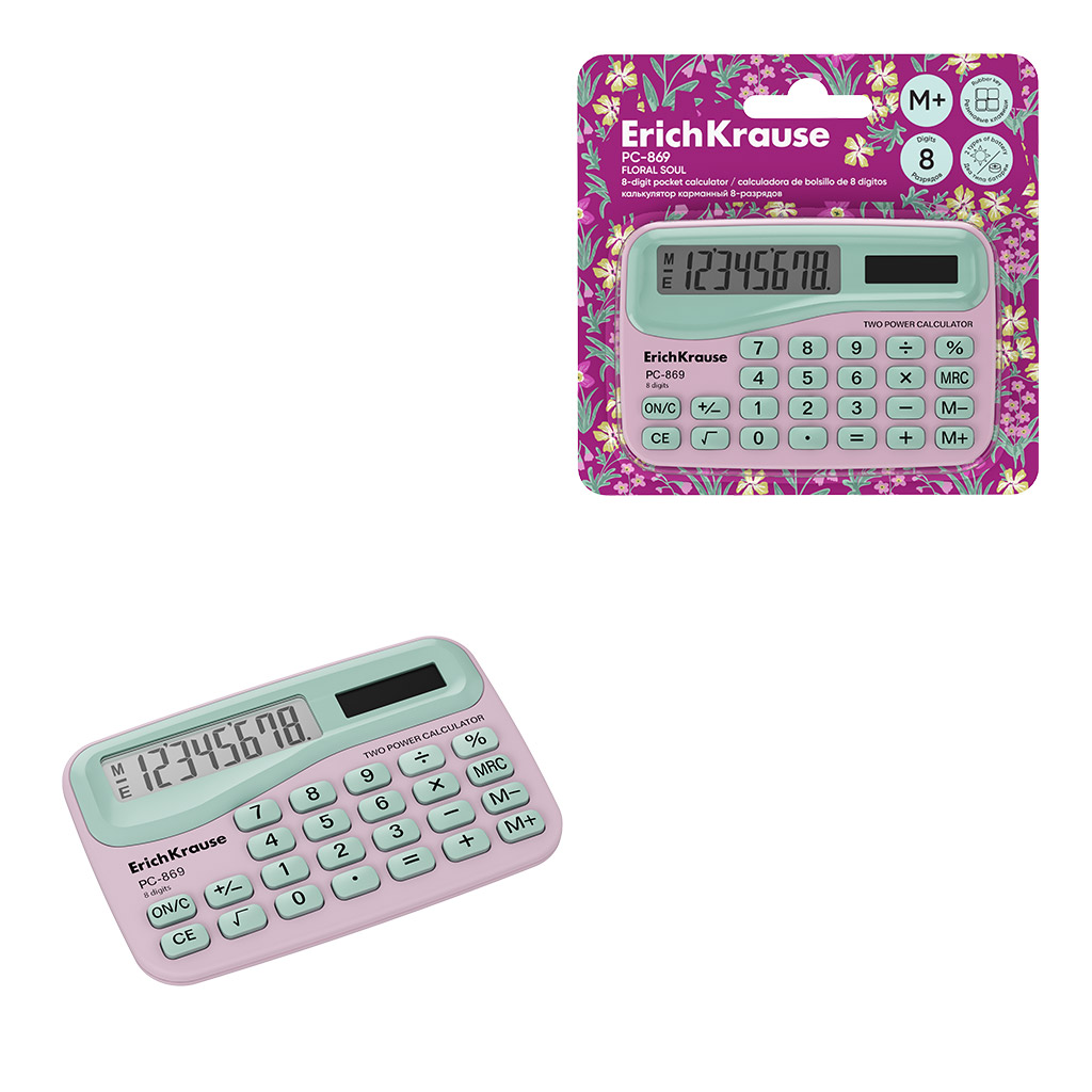 Калькулятор карманный 8-разрядов ErichKrause PC-869 Floral Soul, ассорти (в блистере по 1 штуке)