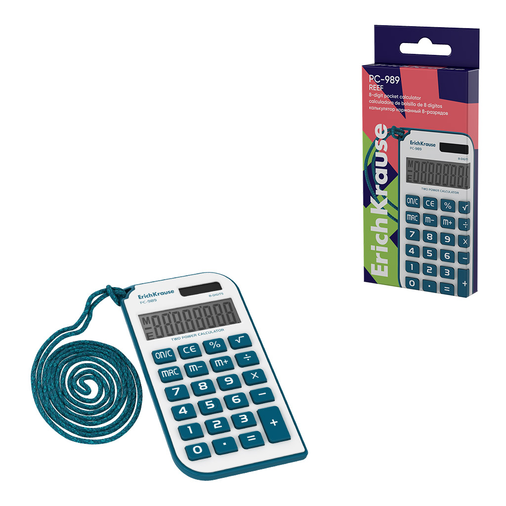 Калькулятор карманный 8-разрядов ErichKrause PC-989 Reef, ассорти (в коробке по 1 штуке)
