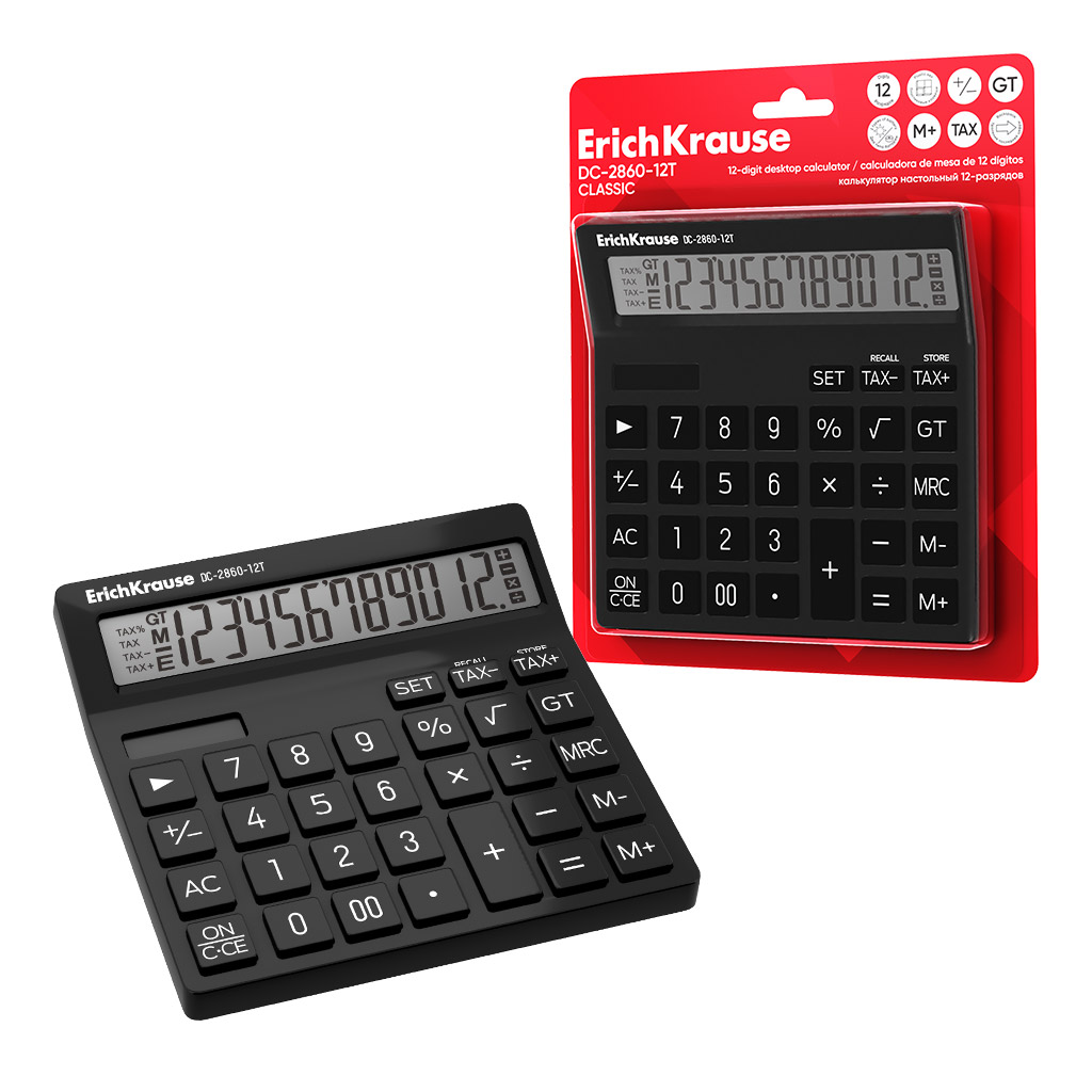 Калькулятор настольный 12-разрядов ErichKrause DC-2860-12T Classic, черный (в блистере по 1 штуке)