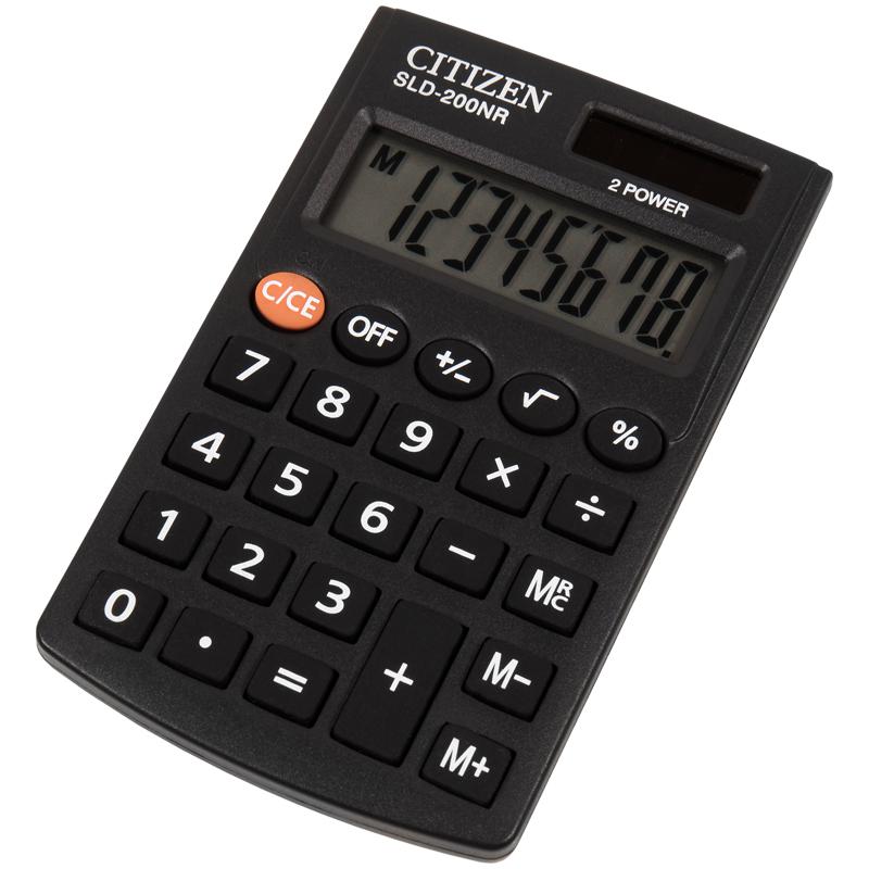 Калькулятор карманный Citizen SLD-200NR, 8 разр., двойное питание, 62*98*10мм, черный SLD-200NR