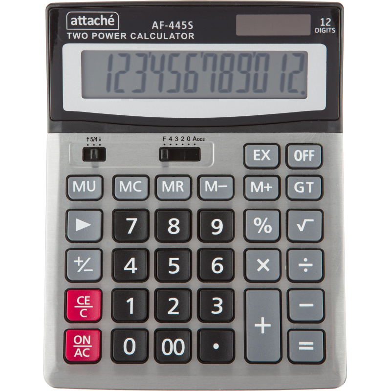 Калькулятор настольный ПОЛНОРАЗМЕРНЫЙ Attache AF-445S,12р, дв.пит, серебр